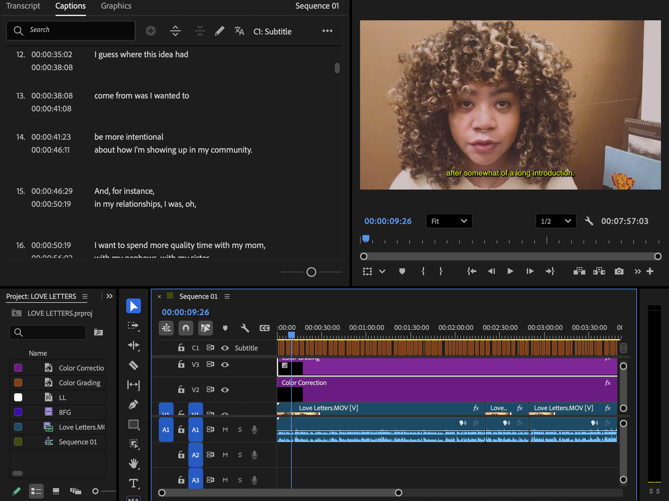 I went on Skillshare and searched for classes on color grading and color correction. While a part of me cringes and is embarrassed to show my mistakes and learning process in public, I also know that I said I wanted this to be messy. As folks tend to say, we’re used to seeing the highlight reel and polished outcomes of others and not usually the messy, liminal, awkward parts.
